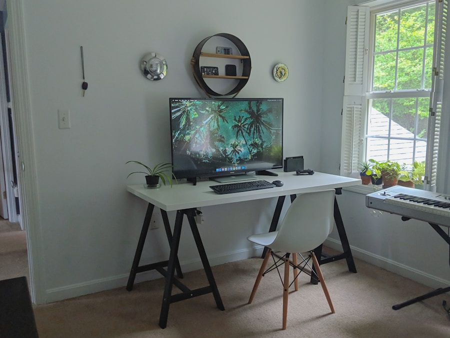 Sempre que possível, deve-se posicionar a mesa perto de uma janela para aproveitar a luz do dia, mas é importante evitar reflexos diretos no monitor. Quando a luz natural não está disponível ou durante as horas noturnas, é essencial utilizar lâmpadas que imitem a luz do dia. Lâmpadas LED com temperatura de cor ajustável podem ser uma excelente escolha, pois permitem criar diferentes ambientes conforme necessário.